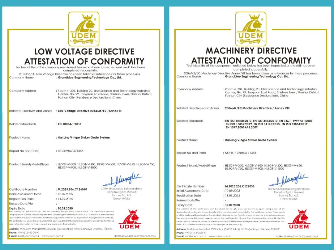 近日,瀚蓝工程技术有限公司的瀚菱V型焚烧炉(300-1000 t/d等级)(简称“瀚菱炉”)通过欧盟CE认证,成功获得进军欧洲市场的“通行证”。这标志着瀚菱炉满足了欧盟各项严格标准,在设计、生产和运营性能等方面均达到国际领先水平。